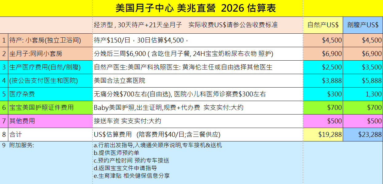 产前食宿、渡假游和产后母婴月子护理,办好宝宝美国护照后送LAX机场返国